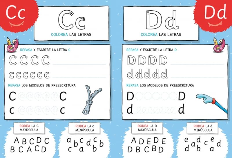 Abre las páginas de este divertido cuaderno, repasa y practica las letras mayúsculas y minúsculas y ¡aprende el abecedario!