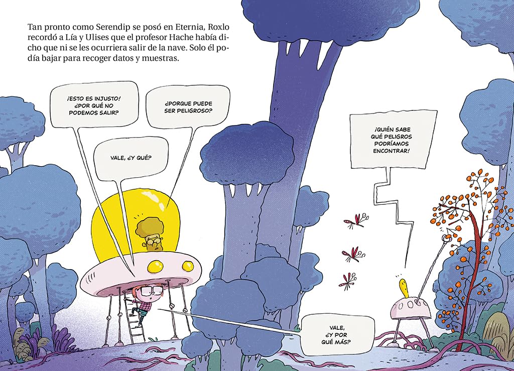 Ulises y Lía no salen de su asombro. Por un descuido, la tutora los ha matriculado en la asignatura de Aventura Total, una extraescolar cuyo profesor tiene fama de ser un tanto estrafalario. La cosa no pinta bien, pero, como siempre, la realidad supera a la ficción, y todo cambia cuando descubren que el profesor Hache tiene escondida una nave en el aula. La nave, llamada Serendip, es una maravilla técnica y dispone de un robot piloto, Roxlo. Lía y Ulises aún no se imaginan que están a las puertas de una aventura que los llevará a Eternia, muy lejos de la Tierra. Una verdadera Aventura Total.
