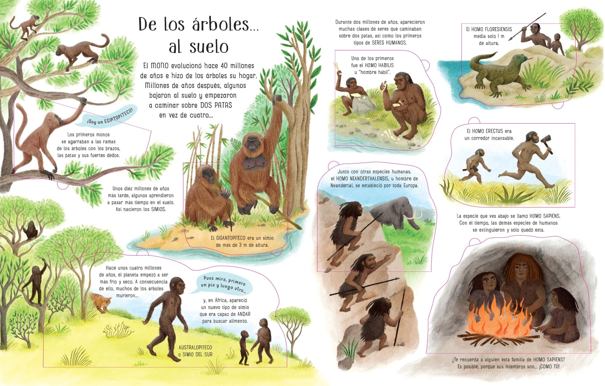 Didáctico libro que cuenta la evolución de las especies de manera clara e interactiva, con la ayuda de solapas. ¿Cómo se originaron las primeras formas de vida? ¿Por qué los animales y las plantas son como son? Los niños encontrarán respuesta a estas y muchas otras preguntas.