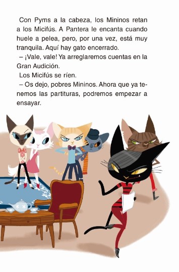 Lamentablemente, Los Micifús también quieren brillar en el escenario, especialmente Pantera. La pelea ya está servida. Desapariciones, un profesor de canto sin voz, patas de terciopelo falsas, estrellas reales encerradas en armarios de escobas.