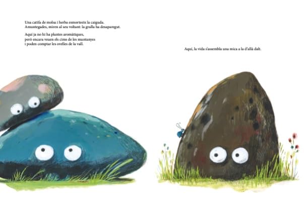 En la cima de la montaña viven tres cantos rodados. Cada mañana, admiran las cimas de las montañas, cuentan las ovejas del valle y observan cómo crecen las plantas aromáticas. Aquí viven una hermosa vida de rock. Pero un día, un rayo golpeó el monte y fueron expulsados. Del rebote al rebote, buscaron nuevos sitios para vivir una vida preciosa de piedras.